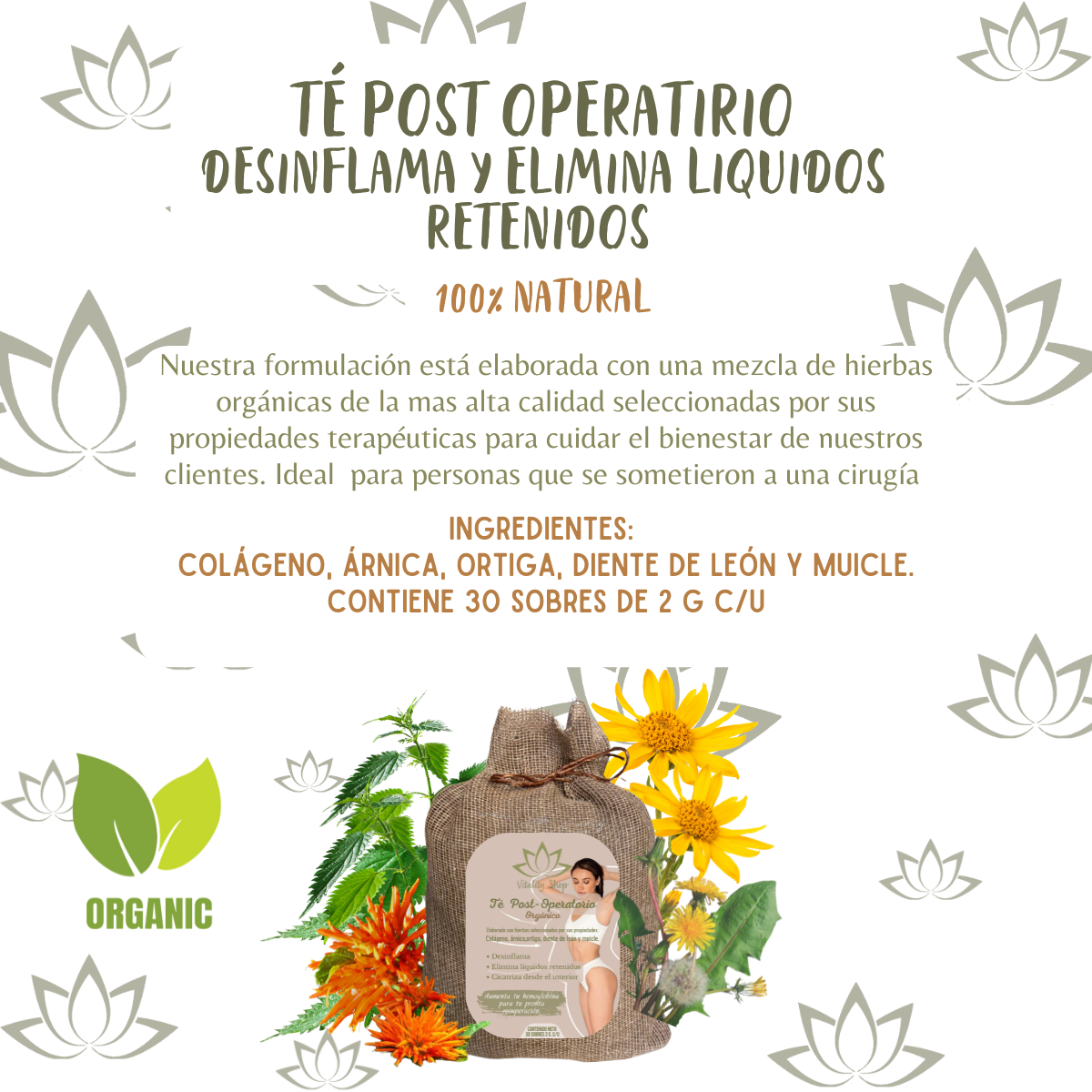 Té post operatorio post parto des inflamatorio elimina líquidos retenidos