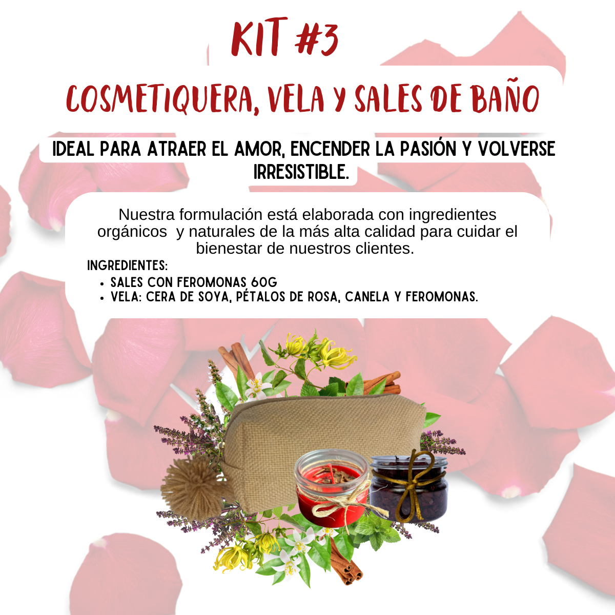 COSMETIQUERA, VELA Y SALES DE BAÑO IDEAL PARA ATRAER EL AMOR, ENCENDER LA PASIÓN Y VOLVERSE IRRESISTIBLE.