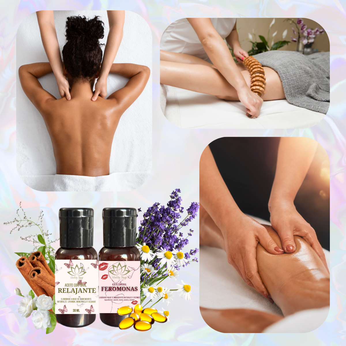 El efecto que hace el aceite relajante en el cuerpo, a través del amasamiento y fricción, dilata el poro provocando la absorción del aceite junto con sus propiedades terapéuticas.
