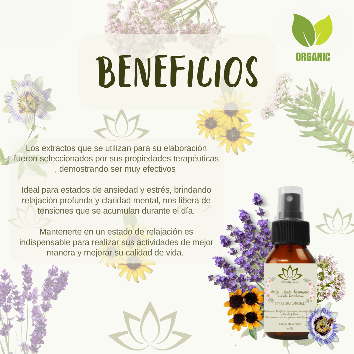 PASIFLORA, VALERIANA, LAVANDA, BOLDO Y OJO DE GALLINA
