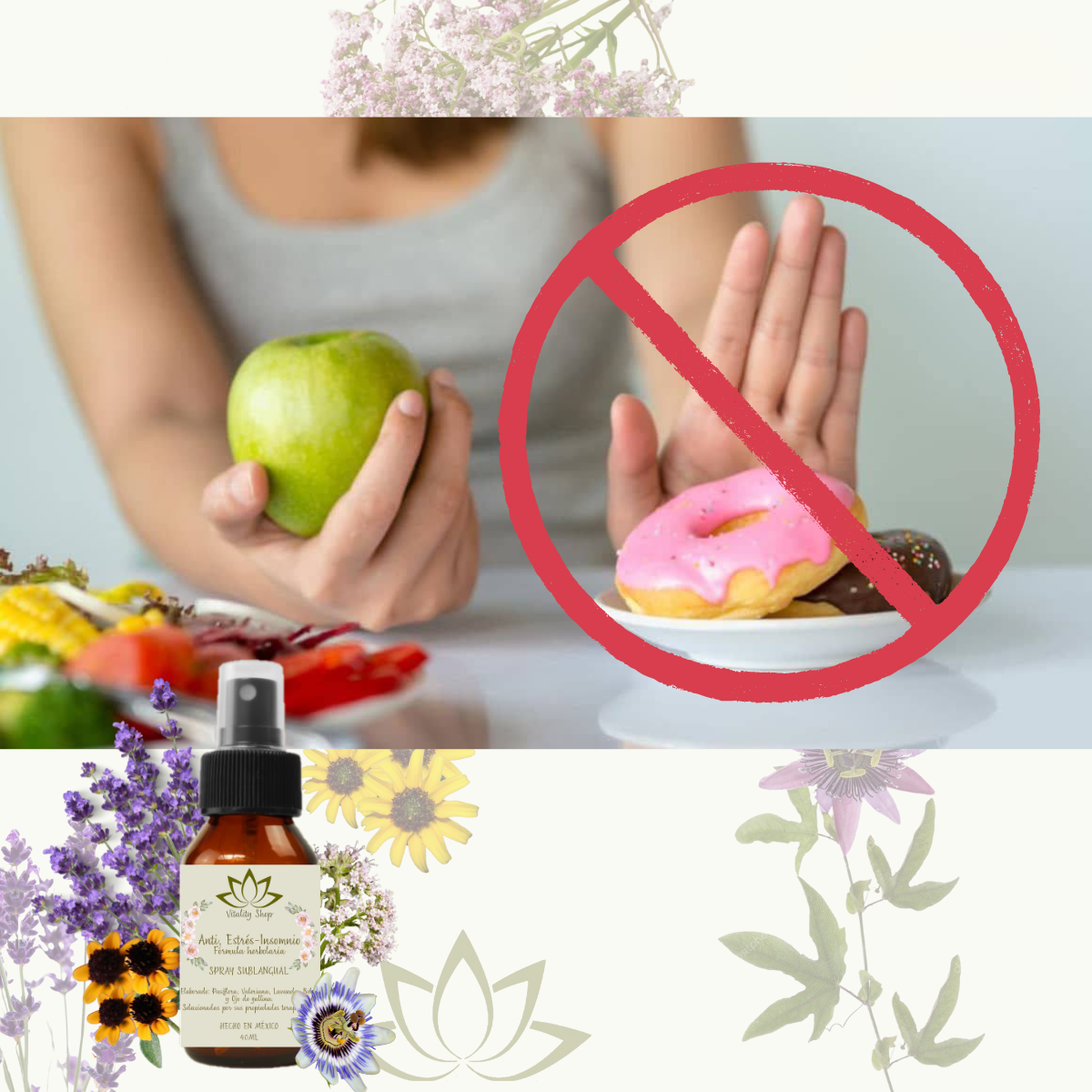 PARA ANSIEDAD O ESTRÉS: Se aplica justo en los momentos de ansiedad por comer, incluso antes de comidas o reuniones donde desee evitar excederse.. Tome agua suficiente.