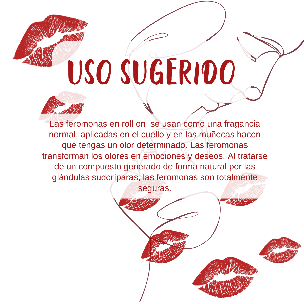 Las feromonas en roll on se usan como una fragancia normal, aplicadas en el cuello y en las muñecas hacen que tengas un olor determinado. Las feromonas transforman los olores en emociones y deseos. Al tratarse de un compuesto generado de forma natural por las glándulas sudoríparas, las feromonas son totalmente seguras.