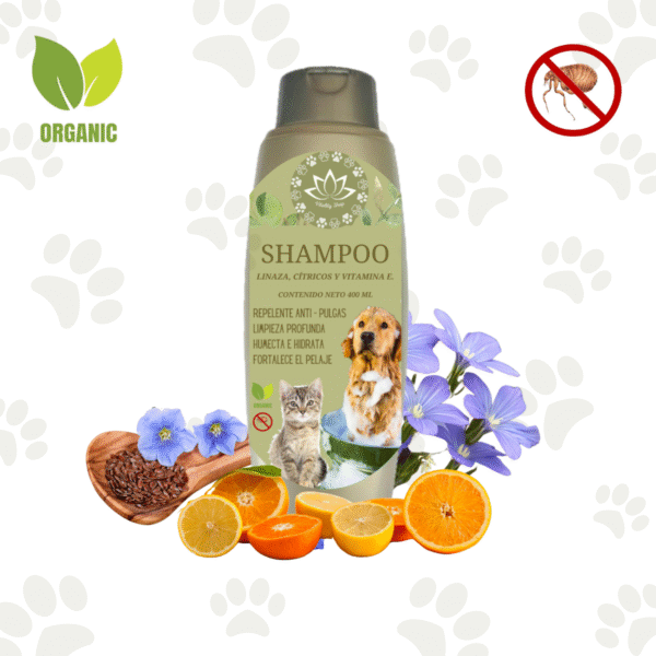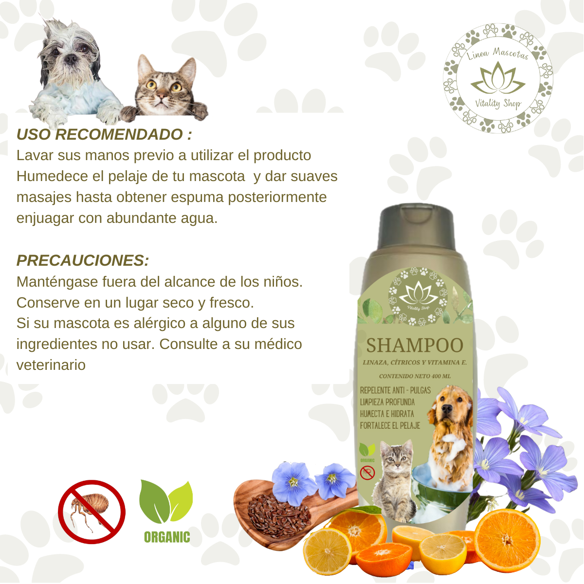 Nuestra formulación está elaborada con ingredientes orgánicos y naturales de la más alta calidad para cuidar la piel de tu mascota libre de químicos y pesticidas utilizando repelentes de origen natural para evitar el contagio de pulgas o garrapatas.