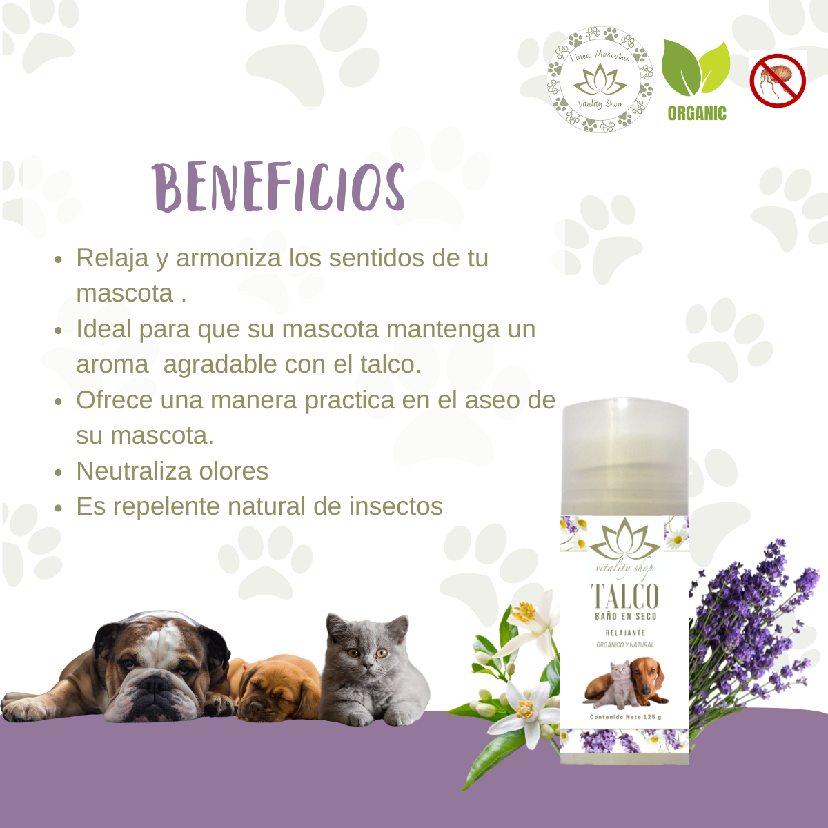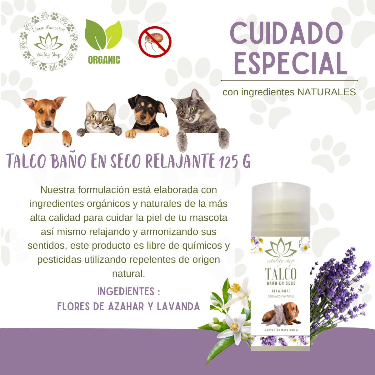 Nuestra formulación está elaborada con ingredientes orgánicos y naturales de la más alta calidad para cuidar la piel de tu mascota así mismo relajando y armonizando sus sentidos, este producto es libre de químicos y pesticidas utilizando repelentes de origen natural.