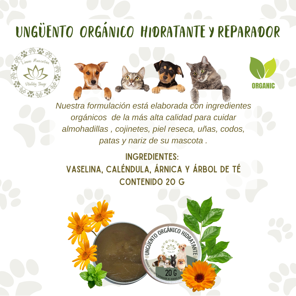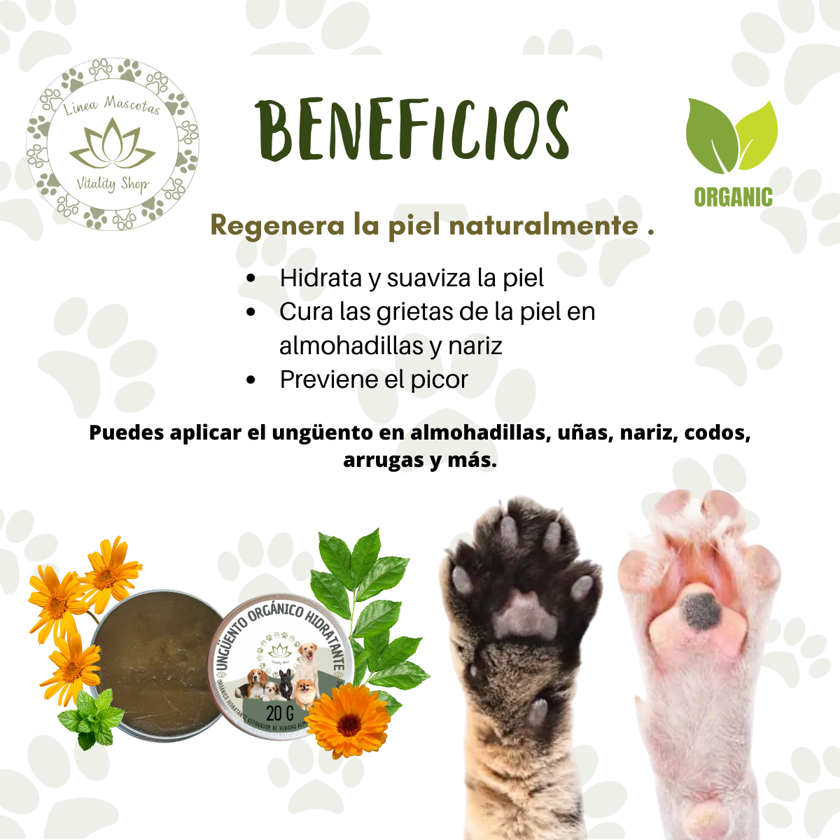 Nuestra formulación está elaborada con ingredientes orgánicos de la más alta calidad para cuidar almohadillas, cojinetes, piel reseca, uñas, codos, patas y nariz de su mascota.